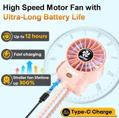- AMTIFO Pink Stroller Fan - USB Rechargeable, Quiet Cooling, 4 Mini,