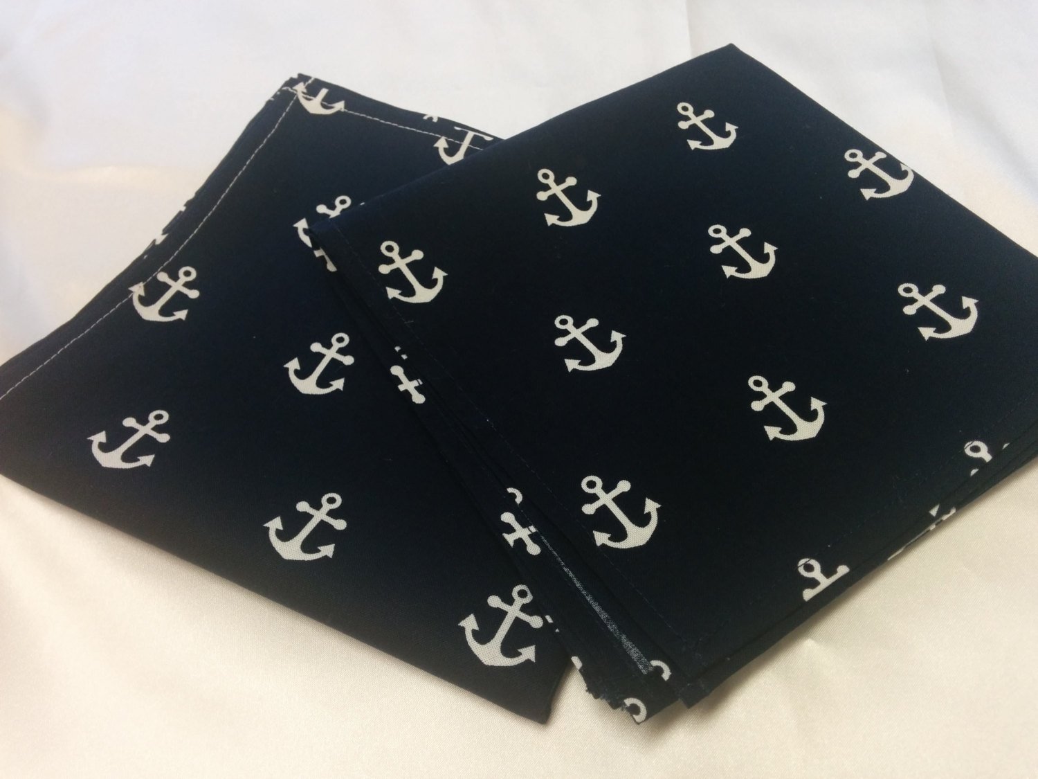 - ANCHOR NAPKINS SET- Set of 4, White Anchors on Navy Blue Napkins - Nautical, Bea