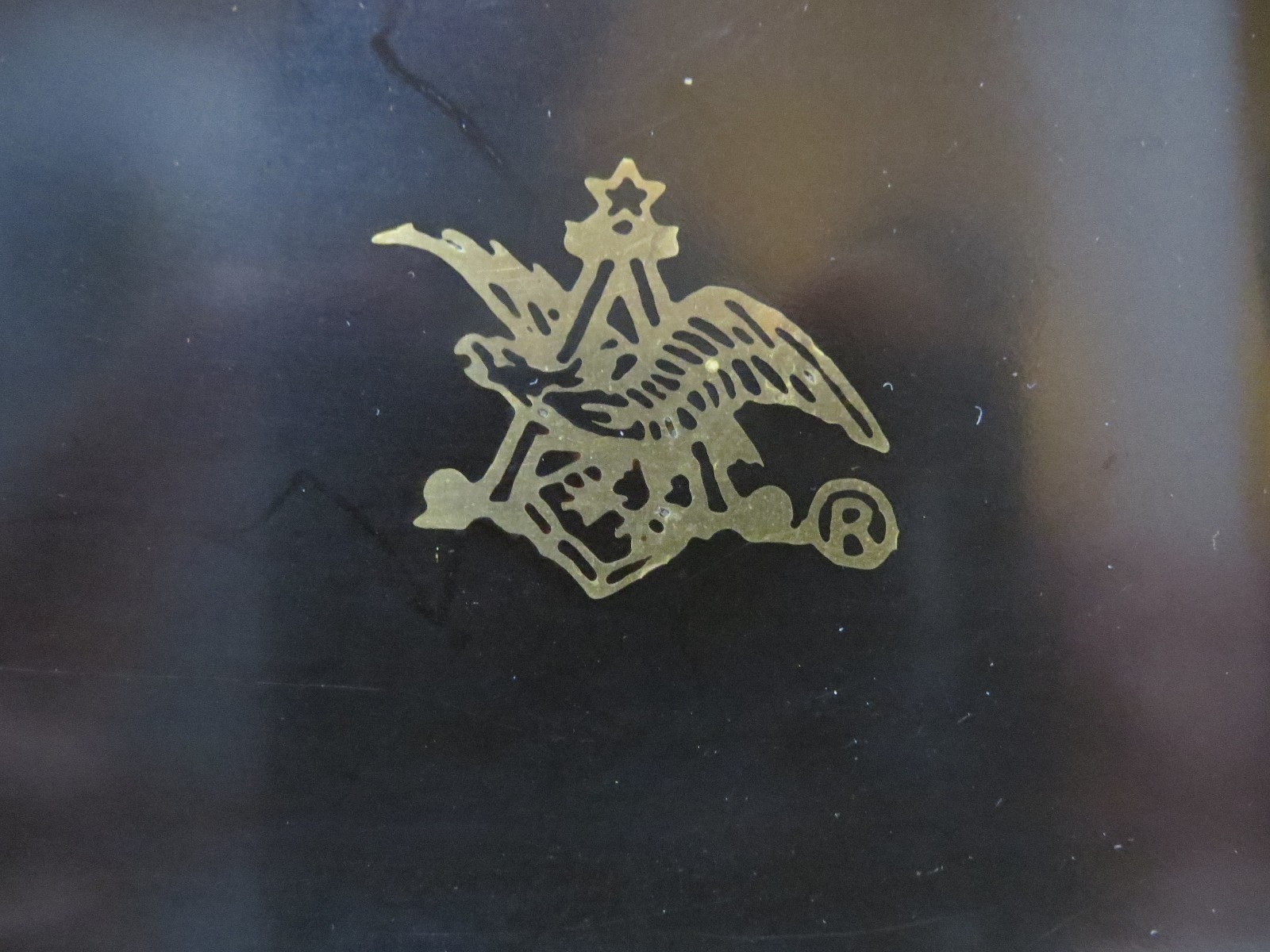 ANHEUSER-BUSCH BEER Metal Wood Shell Hand Inlaid Beagle Fox Hunt TRAY BREWERIANA