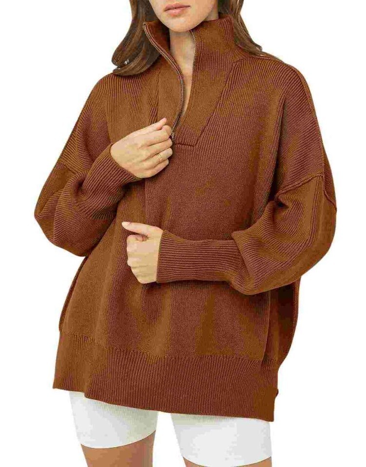 - ANRABESS Women Burgundy Quarter Zip Pullover Sweatshirt XL Long Sleeve