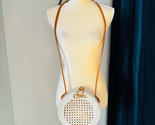 - ANTHROPOLOGIE Rattan Circle Crossbody Bag, White/Cream/Brown, Classic Chic