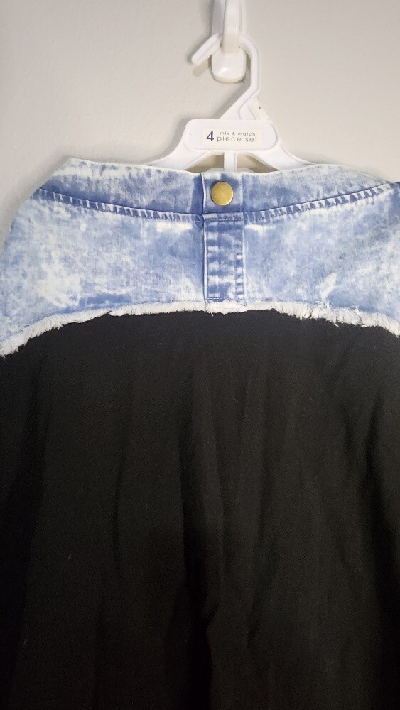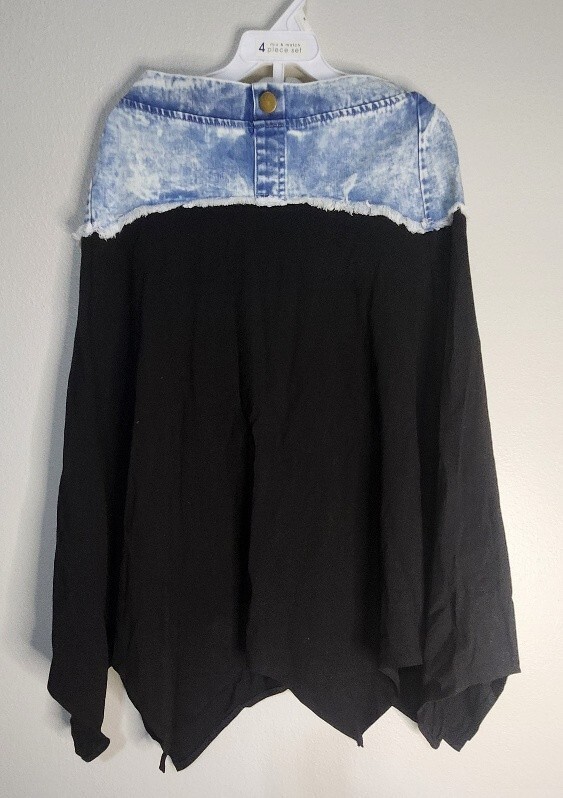 This product is a black denim skirt by the brand AP, designed in a size 14 for teenage girls. The A-line style skirt features a long length, made of denim fabric. Perfect for a casual yet stylish look, this skirt can be paired with a variety of tops and shoes for a versatile addition to any wardrobe.