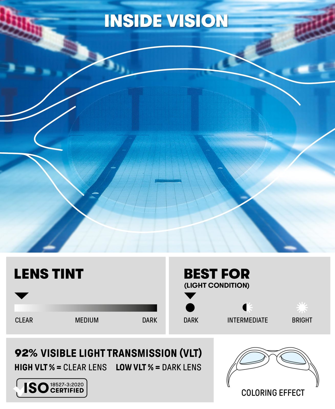 The silicone strap has a single click for easy adjustment, and provides a secure and comfortable fit to all adult swimmers looking for a single go-to swim goggle for all their pool sessions