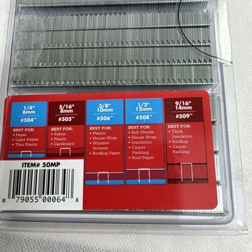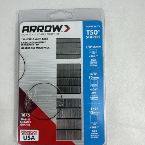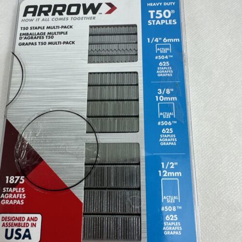 - ARROW 508 Multipack HD Staples 1875 Staples T50 1/4”, 3/8”, 1/2”