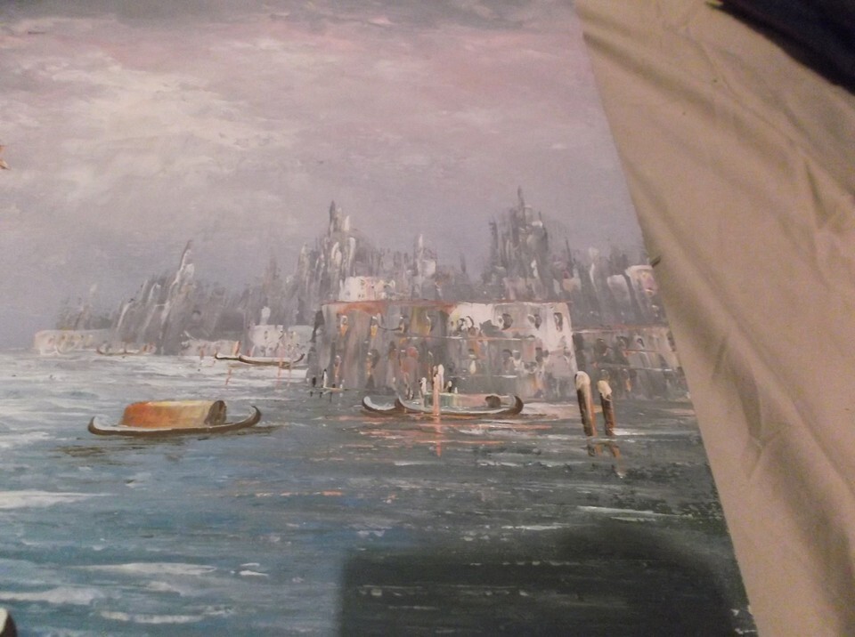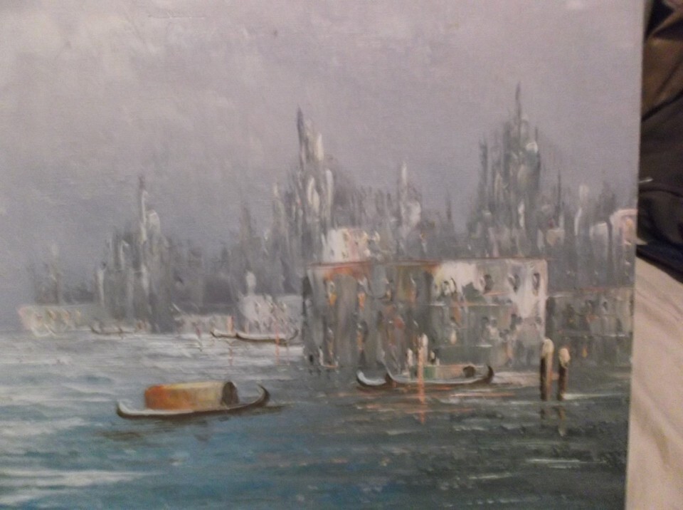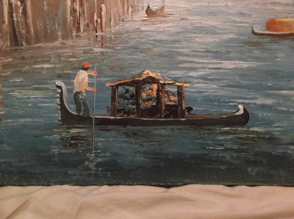 ART PIECE by Y. Jensen Acrylic Painting Island City Gondola 20" by 24" 5537