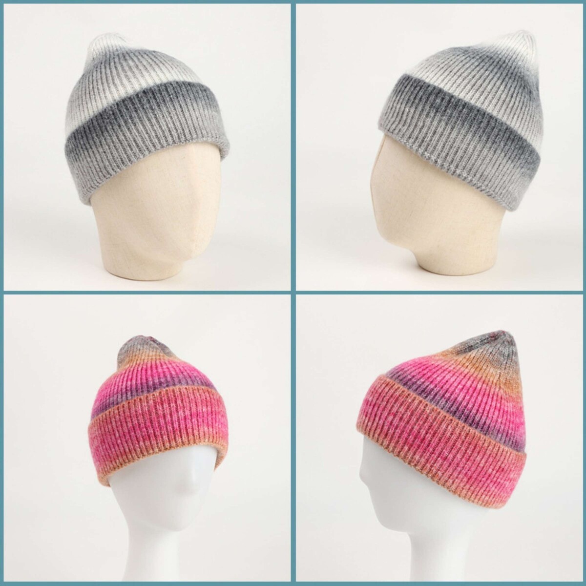 ART & WILLOW Ombre Beanie - Gradient Spray Yarn Knit Hat Ski Outdoor Winter Cap