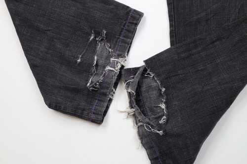Zipper broken. Cuffs ripped and have big holes. Distressed and faded