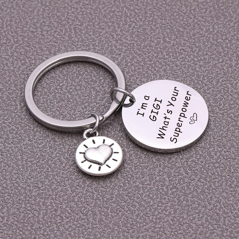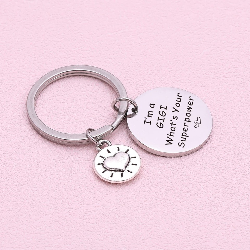 - ASANHAO Gigi Stainless Steel Keychain Mother's Day Gift Silver