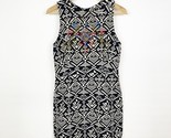 ASTR Black And Tan Womens Size Large Aztec Print Open Back Beaded Dress