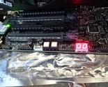 Board powers up (lights and fans work) but does not complete POST. Being sold as-is for parts or repair.