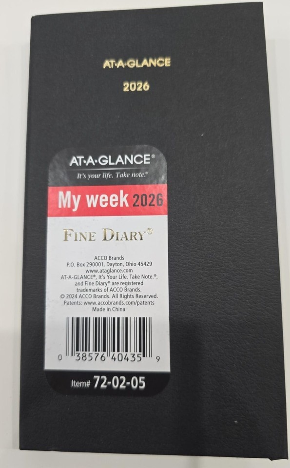 - AT-A-GLANCE 2026 Weekly & Monthly Fine Diary Pocket Size 3" x6" Hardcover 720205