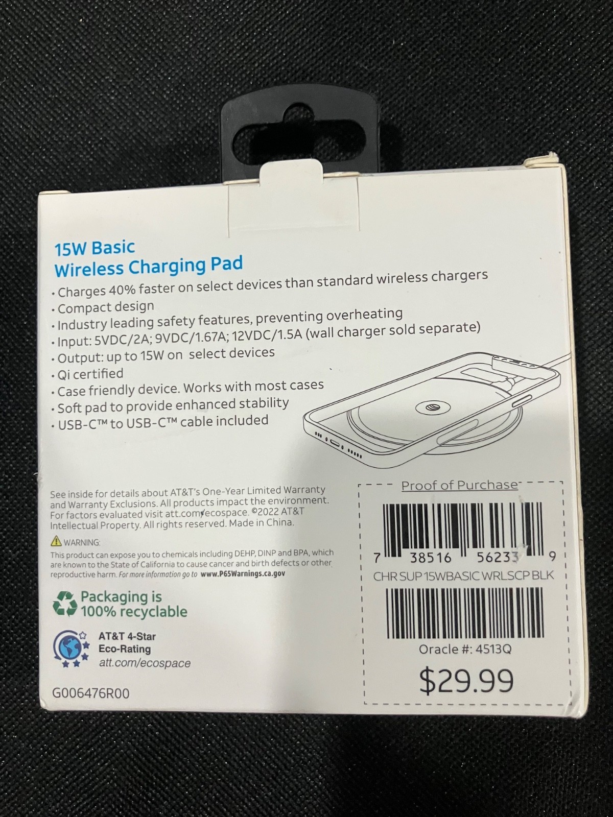 - AT&T 15W Wireless Charging Pad In Original Box Untested
