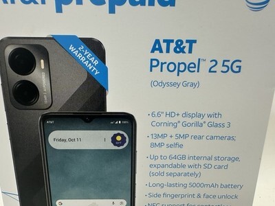 - AT&T Prepaid Propel 2 5G, 6.6" HD+/13MP/64GB/NFC, Gorilla Glass 3, Gray Phone