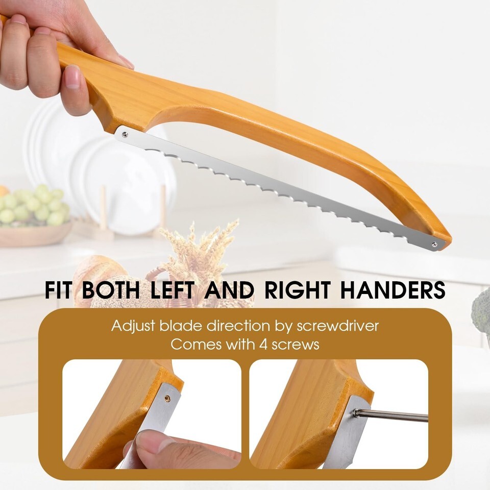 DESIGNED TO FIT BOTH LEFT AND RIGHT HANDERS: No more awkward angles. The original design of the serrated bread knife is a right-handed configuration,if you're left-handed, you can use the included screwdriver to unscrew the two screws and then reverse the blade to use it.