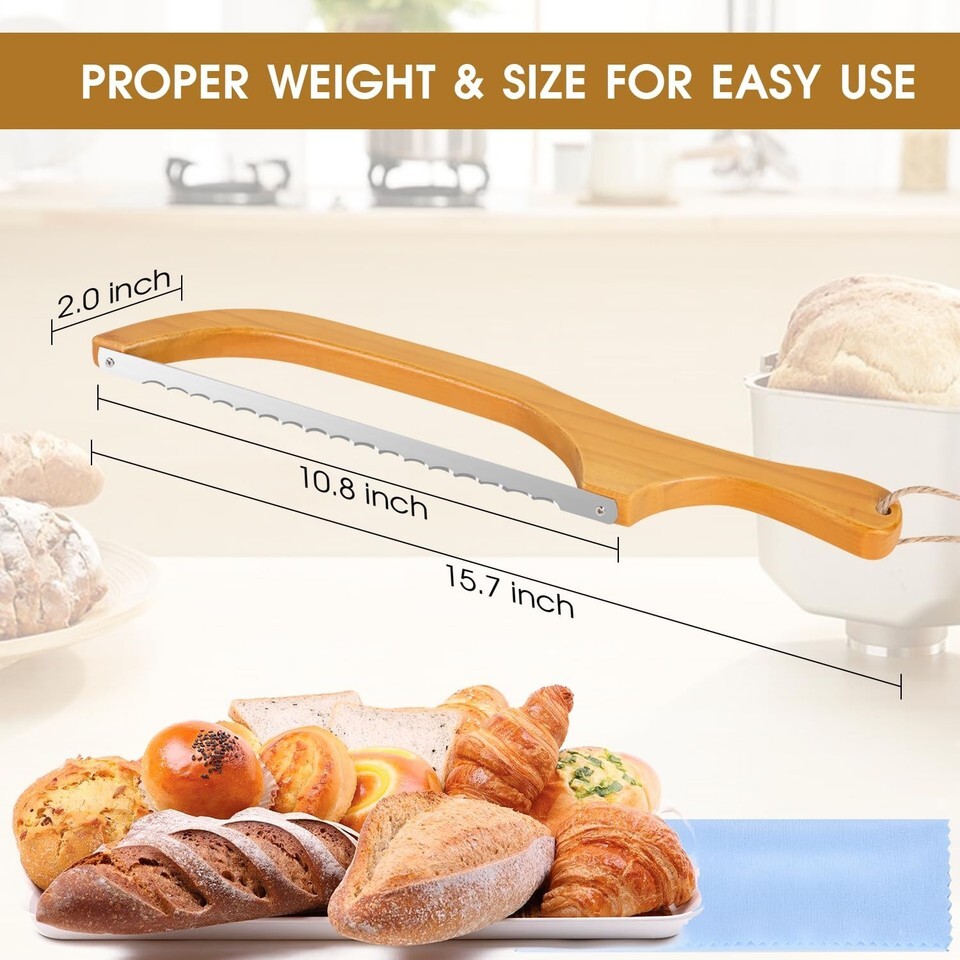 - AUPZIMI Sourdough Bread Knife Wooden Handle Bow Cutter w/ Cover Stainless