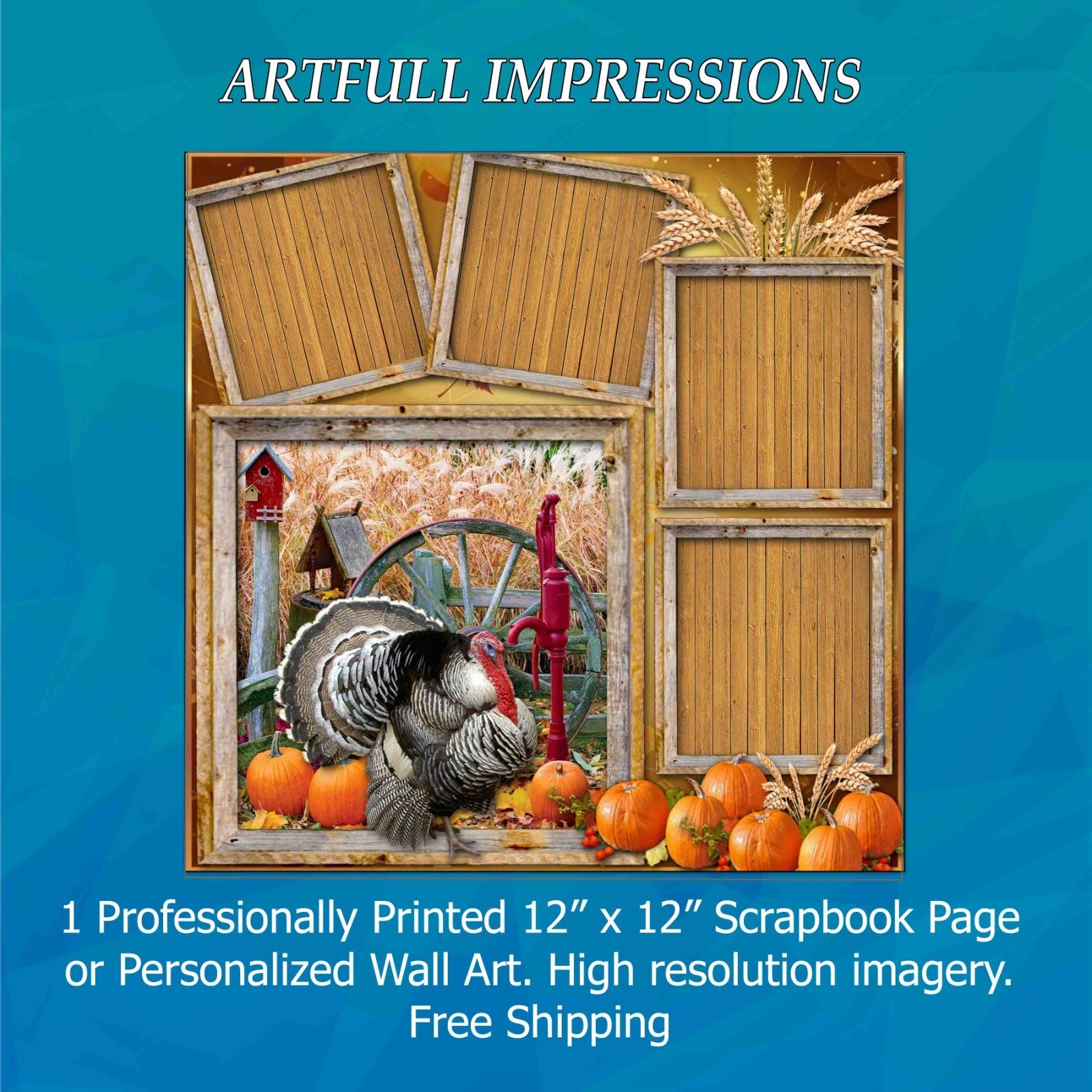 - AUTUMN BLESSINGS – Harvest Turkey Gathering Personal Wall Art or Scrapbook Page