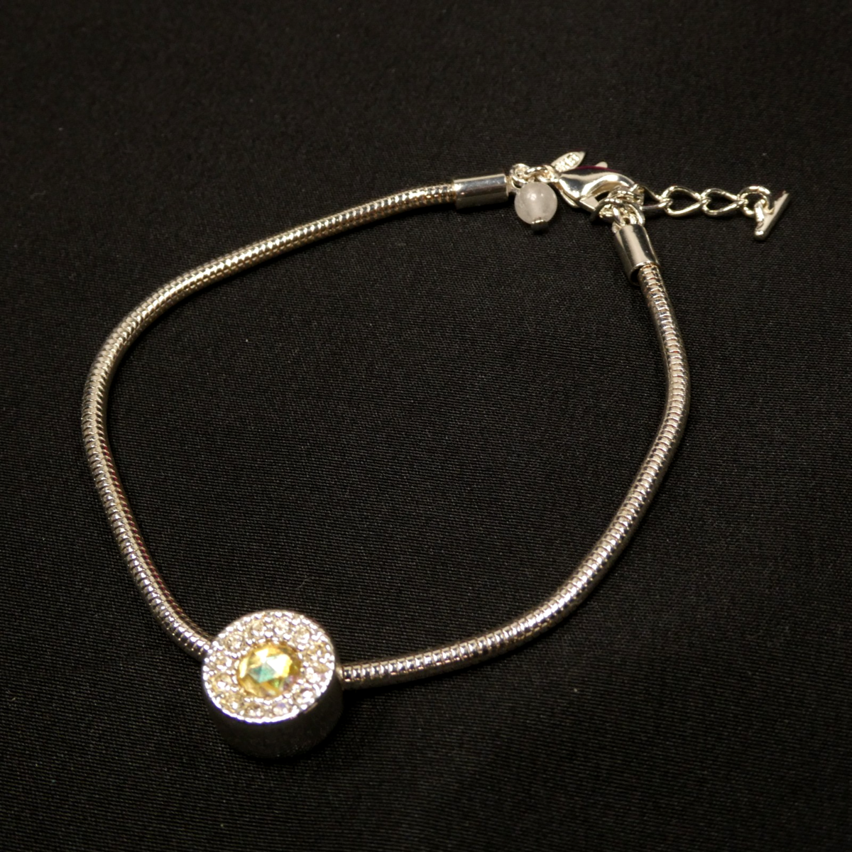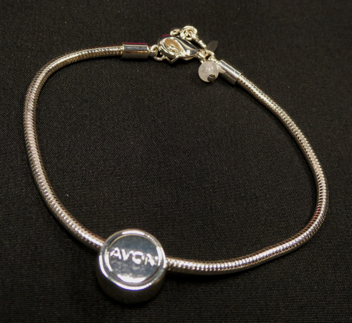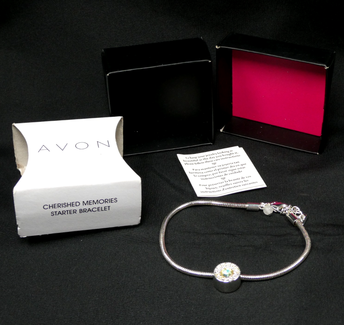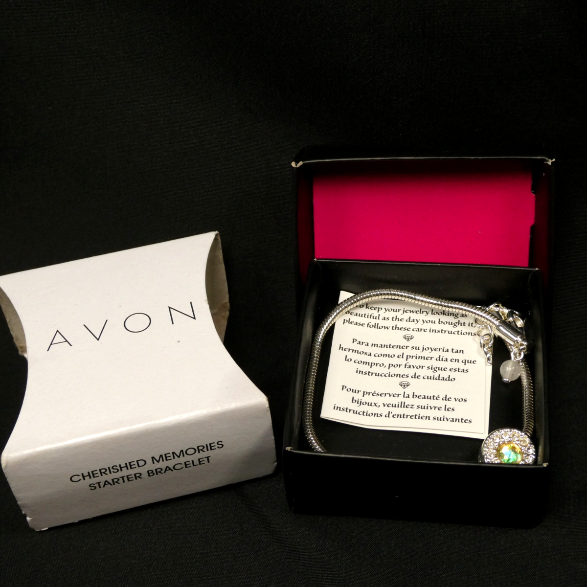 For Sale: AVON Faceted Stone Pendant Silver-Toned Snake Chain 7" Bracelet in Original Box