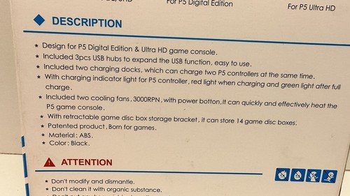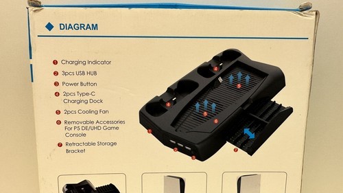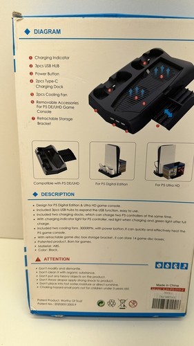 Introducing the AYWHP PS5 changing Stand with Cooling feature, designed to enhance your gaming experience. This high-quality stand is built with AYWHP technology, ensuring durability and reliability. It's compatible with all PS5 models, and comes with a charging dock that allows you to charge your controllers while you play.