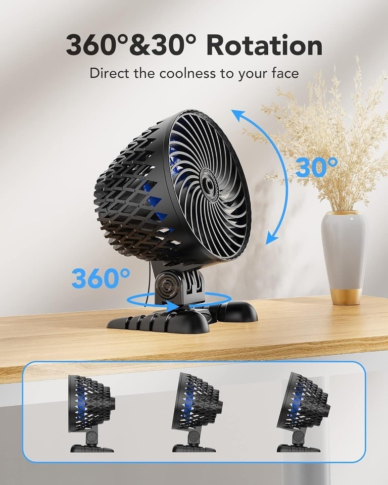?The Quieter?The 2023 upgraded silent construction design provides stronger airflow while being 25% quieter than other desk fans for your maximum comfort. Better accompany your your work or sleep without disturbing you.