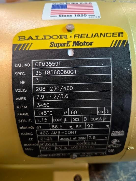 - ABB Baldor Super-E Motor CEM3559T 3HP 3450RPM 35TT856Q060G1 230/460V NEW $299