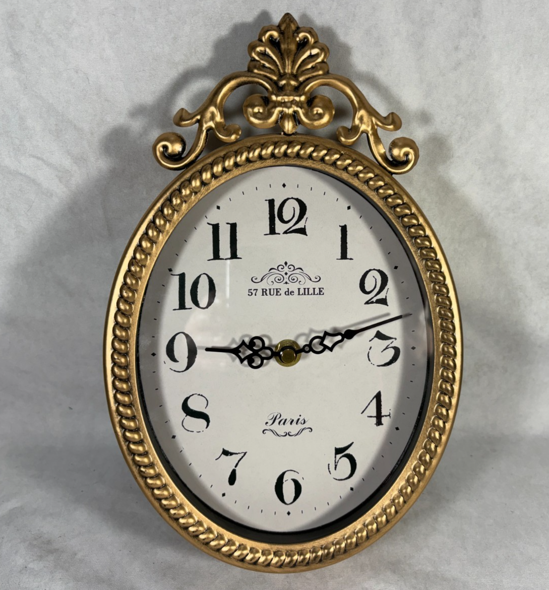 - Abdurey Small French Retro Decorative Wall Clock Antique Gold Vintage Oval
