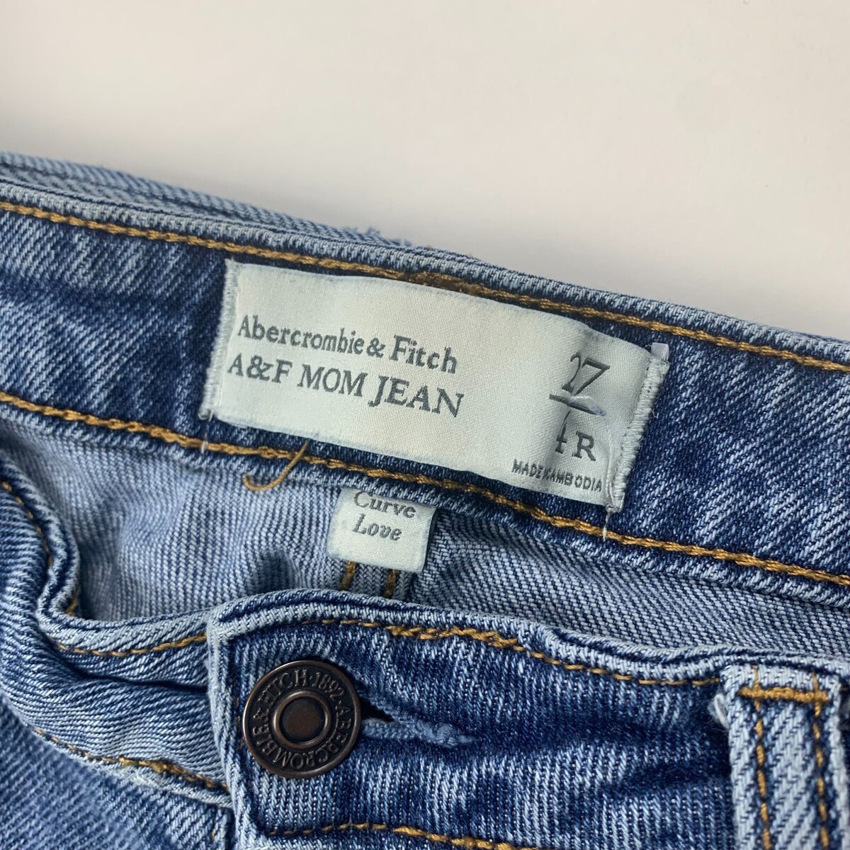 - Abercrombie & Fitch Womens Mom Jeans Curve Love Size 27 Blue Destroyed
