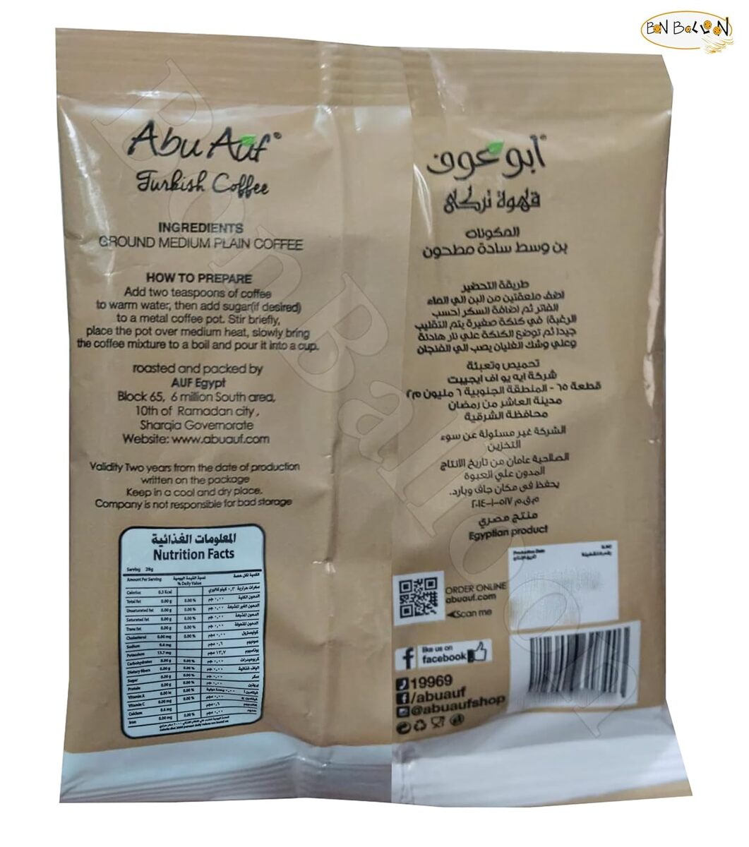 Abu Auf AbuAuf Coffee Contains A Rich Blend Of 100% Premium Arabica Coffee Beans That Have Been Roasted To Perfection . Each Cup Delivers The Delicious Flavor And Unmistakable Aroma . Complex Blend Of 100% Arabica Beans That Delivers The Intense Flavor Of A Medium Roast Coffee Without The Bitterness . Suitable For All Coffee Makers , With The First Scoop You’re On Your Way To Brewing A Cup Of The Heavenly Coffee.