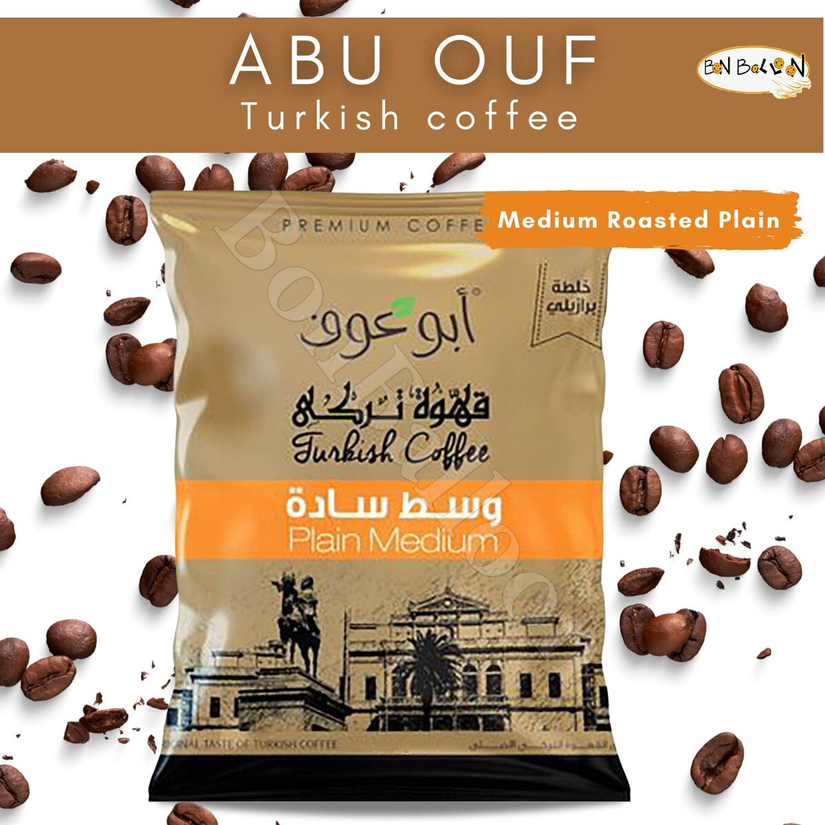 Abu Auf AbuAuf Oriental Original Turkish Coffee ( Plain Medium Roast 3.52 oz / 100 gm ) Cafe Arabic Arabian Arabica Ground Roasted Mud Coffee ?? ??? ??? ??? ????