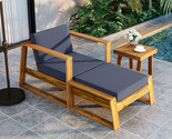 - Acacia Wood Outdoor Lounge Chair & Ottoman Set - All-Weather Patio