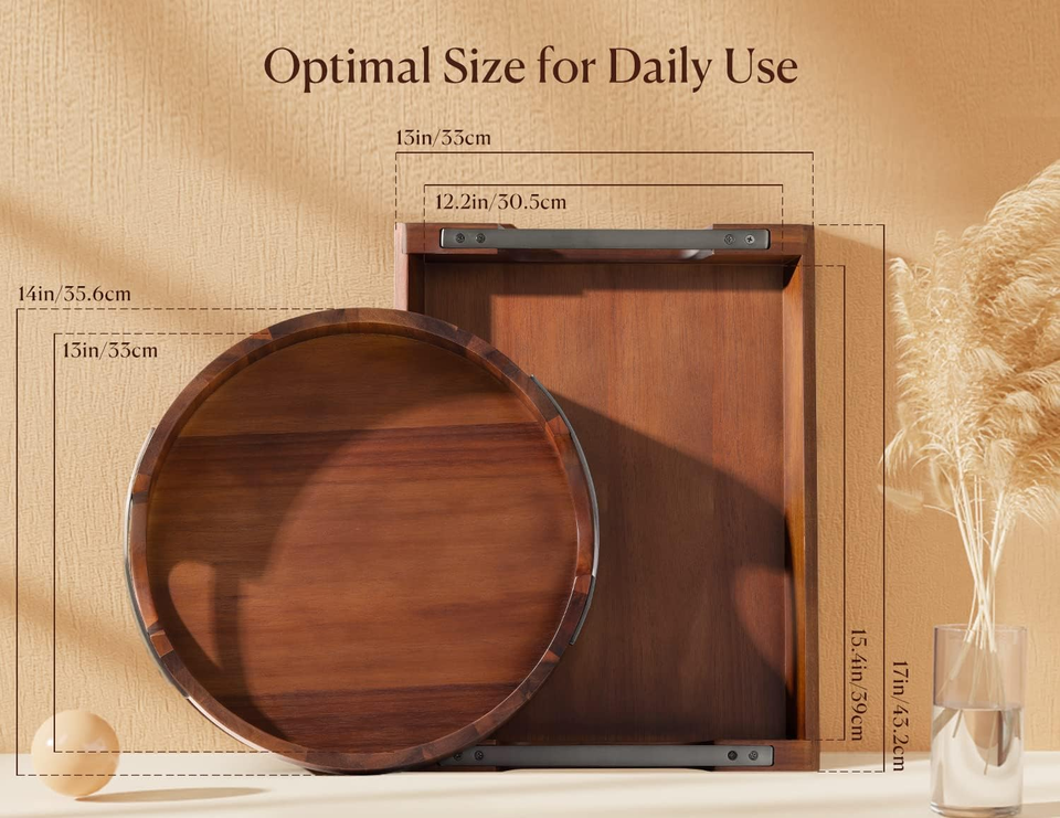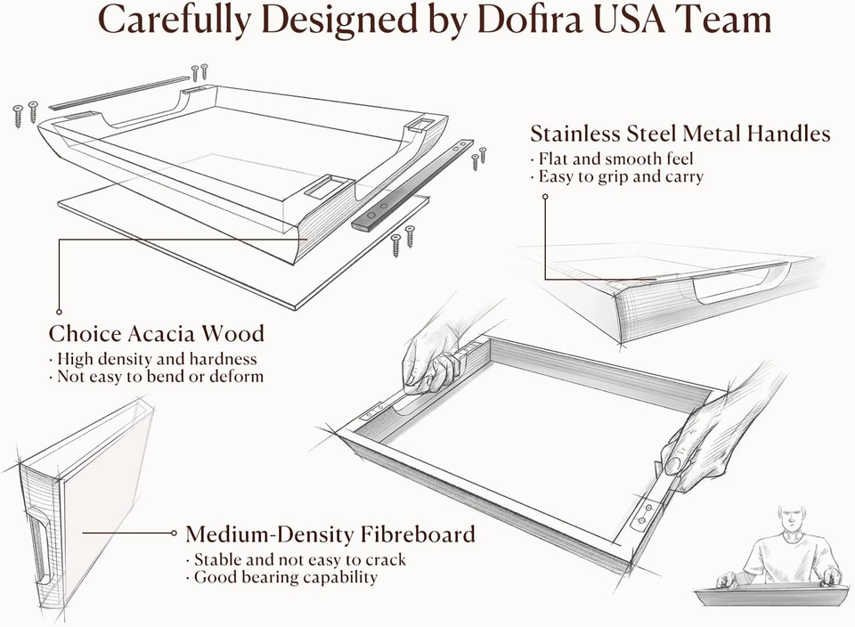 Unbreakable Serving Tray: Premium acacia wood edges articulate tightly to a sturdy MDF bottom, reducing the risk of cracking by 70% compared to solid wood ones. Our strict manufacturing standards ensure a well-made, sturdy wood serving tray that can last for years without chips