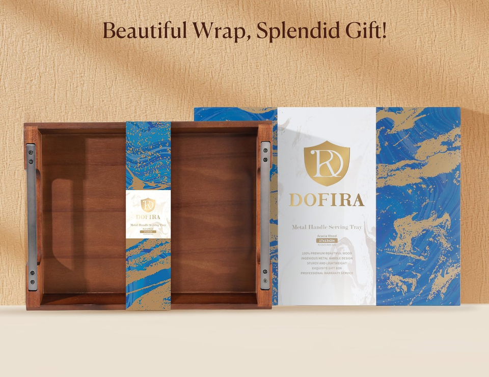 Unexpected Gift Idea : Surprise your loved ones with our acacia wood tray with metal handles which full of blessings! With an exquisite gift box, it's the perfect surprise gift for birthdays, housewarmings, weddings, anniversaries, or any other special event