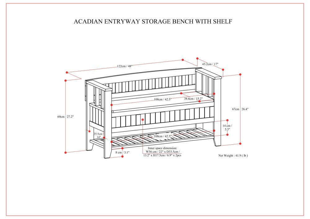 - Acadian Entryway Storage Bench with Shelf | Hallway Organizer