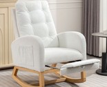 Upholstered Rocking Chair Comfortable Living Room Rocker Lounge Armchair with Solid Wood Base High-Back Porch Rocker Nursery Rocker w/Side Storage Pocket