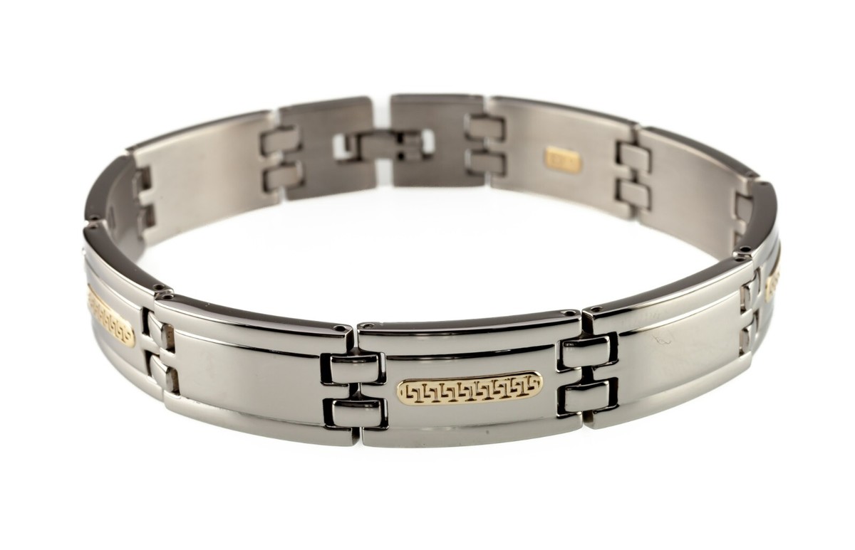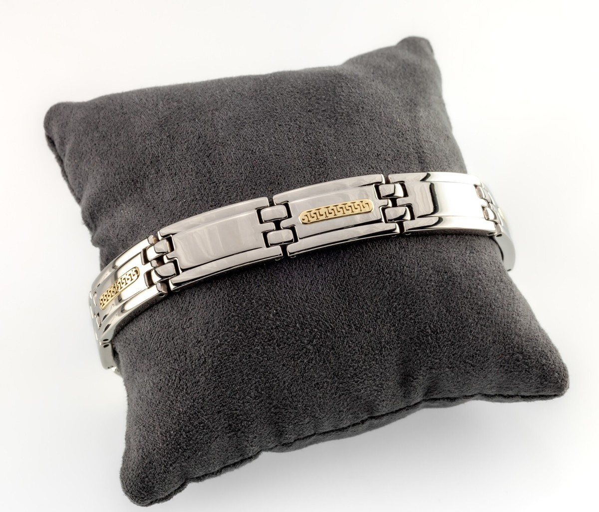 Acciaio inossidabile e braccialetto da uomo in oro giallo 14K 8.5 "