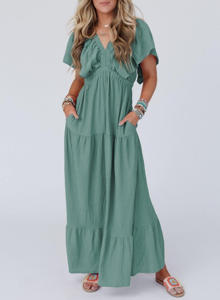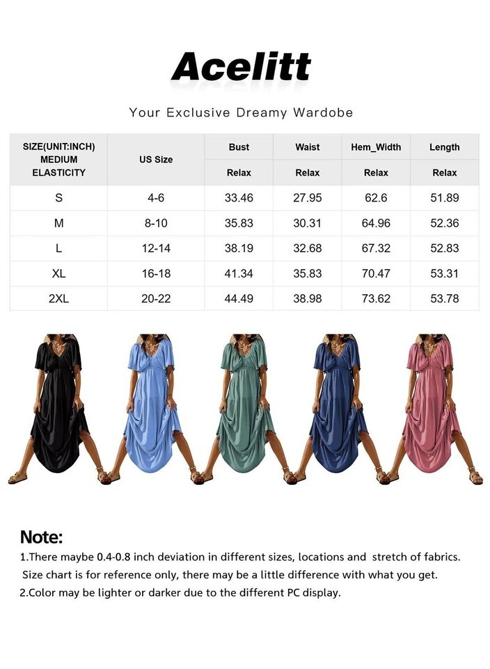 - Acelitt Women's Maxi Dress V Neck Short Sleeve Black Size Small