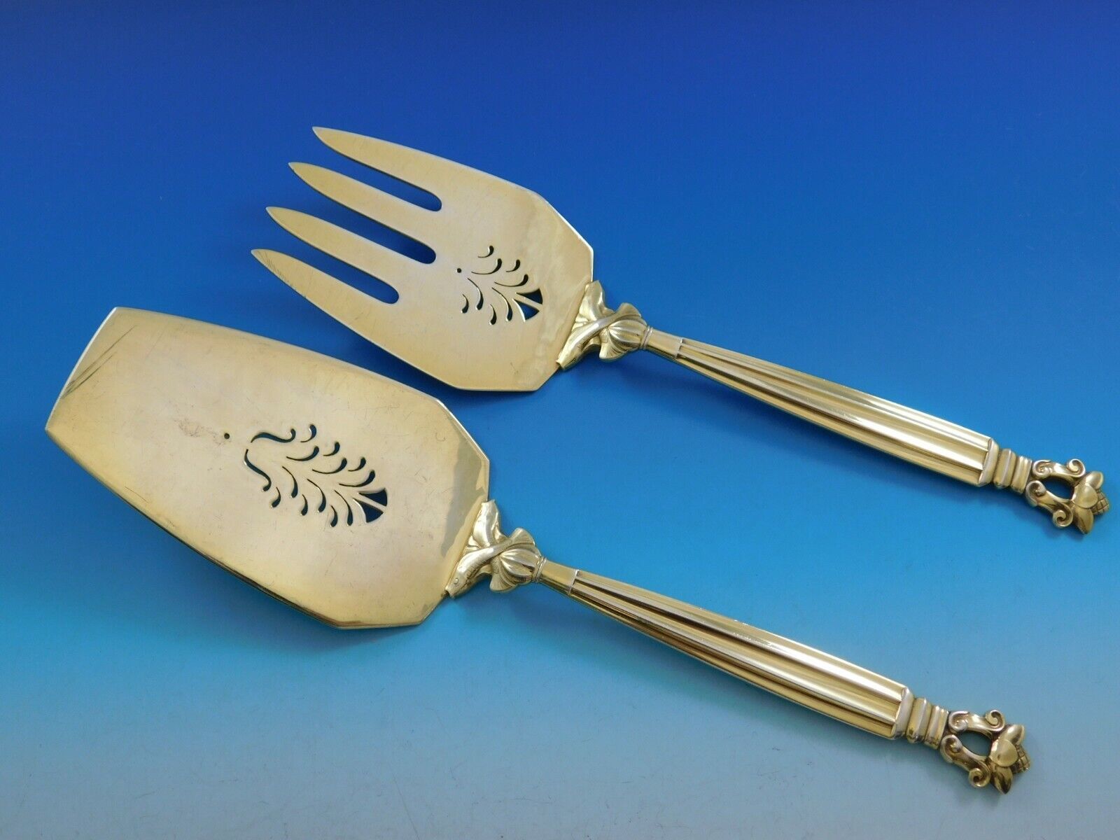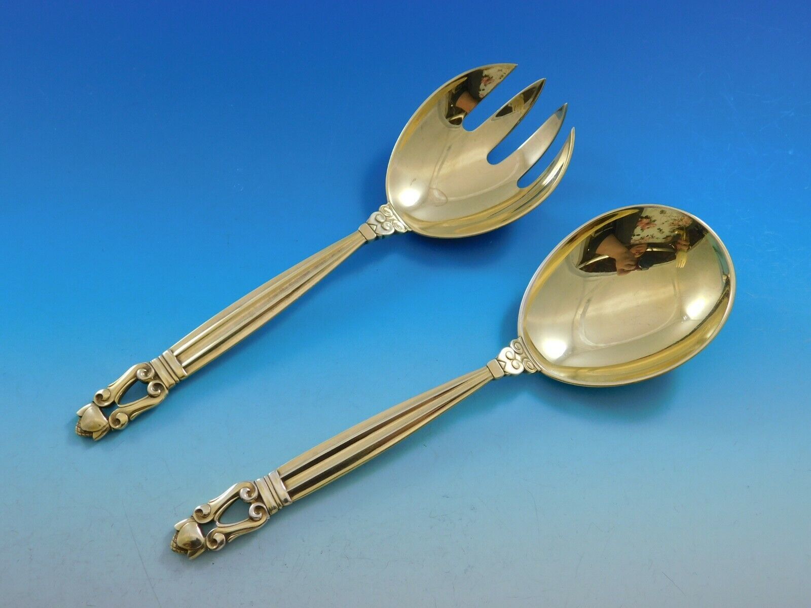 - Acorn by Georg Jensen Sterling Silver Flatware Set 12 Service 102pc Gold Vermeil