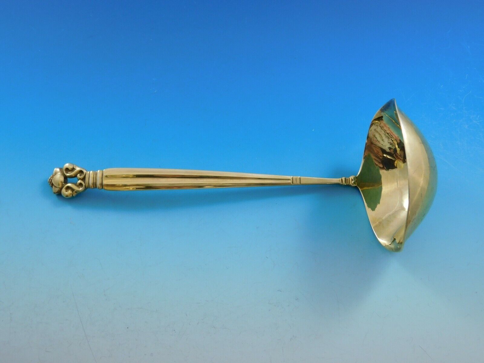 Exceptional Dinner size Vermeil (lightly gold-washed) Acorn by Georg Jensen sterling silver flatware set, 102 pieces. This set includes: