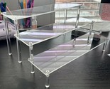 ???????? ????? ????????: This is a unique and elegant acrylic display riser, its simple yet attractive design complements any ambient style. Our shelf stand can organize and display your items at dining table, cabinets, dressers, party, kitchen, shop, etc.