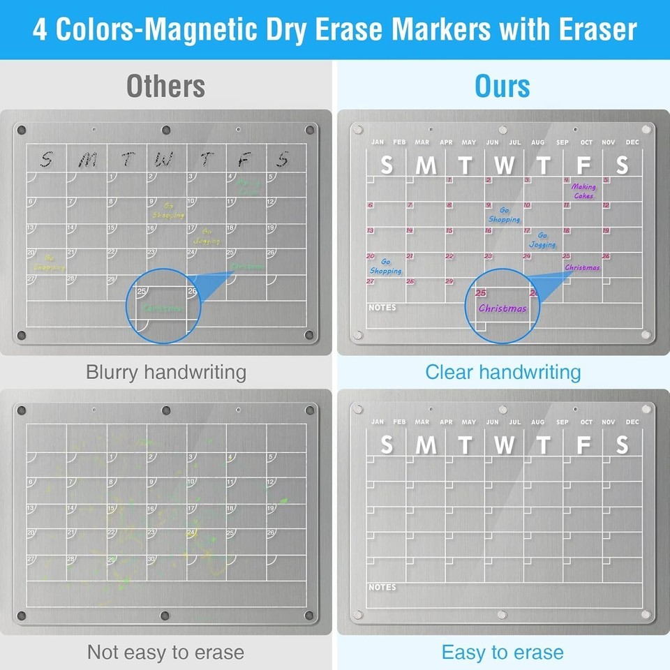 ?Magnetic Dry Erase Calendar?: Our calendars are made of sturdy and high quality acrylic, the stylish and transparent acrylic calendars doesn't take up any space while helps you to plan your daily life easily.