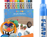 Acrylic Paint Pens for Rock Painting, Fabric, Wood, Canvas, Metal, Ceramic, Glass, 12 Colors Paint Marker Set, Non-Toxic, Quick Drying