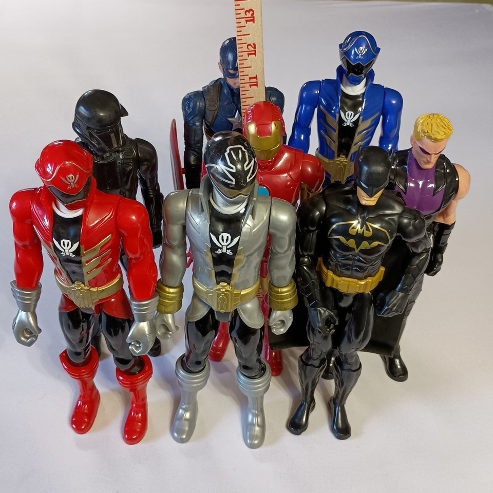- Action Figures Superheros 12” Ironman, Batman, Thor, Rangers, Mixed Lot of 8