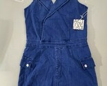 Active USA Women's M Notched Collar Halter Style Neck Denim Shorts Romper Blue