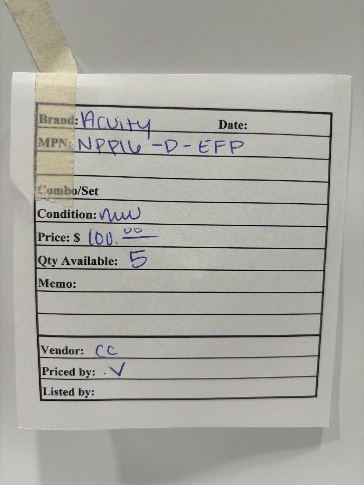 Acuity Npp16-D-EFP Occupancy Controlled Dimming, Power/Relay Pack New-Same Day Ship The NPP16?D?EFP is a networked power/relay pack from Acuity?s nLight family designed for commercial lighting control systems, combining line voltage switching and dimming with occupancy control and external fault protection. It accepts 120?277 VAC (50/60 Hz) input, features a 16?amp latching relay to switch loads, and supplies system bus power (? 40 mA per RJ?45 port) for nLight devices. Listed by: Richard (Sales Team) -people say laughter is the best medicine...they lie...it?s chocolate. -RRW (A positive moment brought to you by Help Resale) About Us Welcome to Help Resale, your go-to consignment shop where value meets quality. At Help Resale, we're dedicated to providing you with an exceptional shopping experience, whether you're looking to find the best deals or consign your items. Need to buy a product, but don't see it in our store? Please feel free to reach out to us and we will help you find it! Help Resale 7200 Fair Oaks Blvd Suite 120 Carmichael CA 95608 Business Hours: Monday-Friday: 9:00 am to 5:00 pm (PST) All product and company names are trademarks TM or registered trademarks of their respective holders. Use of them does not imply any affiliation with or endorsement by them.