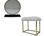 Features: Round Mirror Metal Frame Plush faux fur seat Built with sturdy, durable materials designed to last for years Designed for comfort and everyday functionality. Set Includes: One (1) Vanity Mirror, One (1) Stool