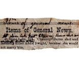 A small newspaper clipping of the murder of Addie Dwight. Believed to be the first recorded homicide in Van Buren County, Indiana.