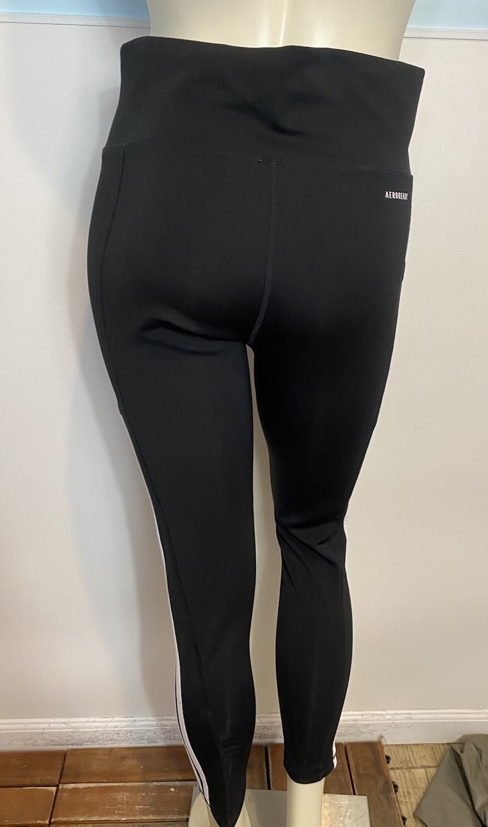 Adidas Black w/ White Stripes Athletic Leggings Aero Ready Womens Size L