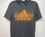 - Adidas Climate Child Size Large 14/16 Gray/ Orange Logo Short Sleeve T-Shirt