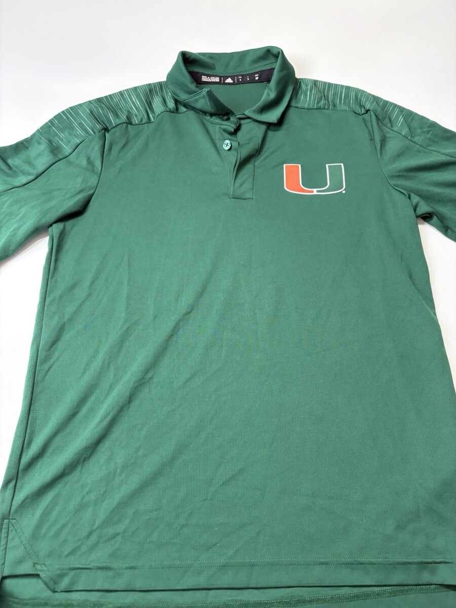 - Adidas Miami Hurricanes Polo Shirt Mens Size S Green UM Short Sleeve
