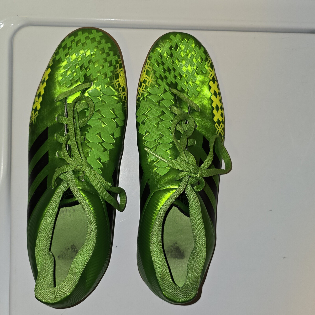 Great pre-owned Condition Adidas P Absolado LZ IN Men's Green Neon Q21692 Indoor Soccer Predator Cleats Size 9. Stunning vibrant colors.