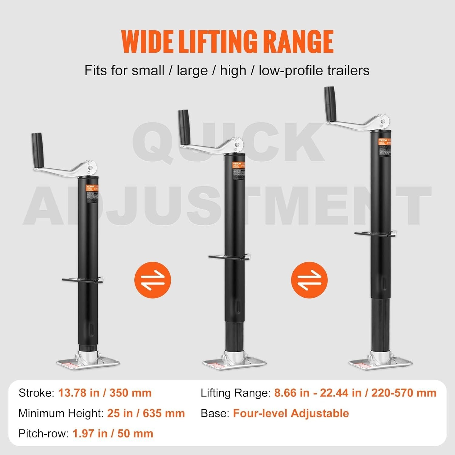 - Adjustable 2000 lbs Trailer Jack: 13-3/4" Lift for Horse & Utility Trailers